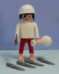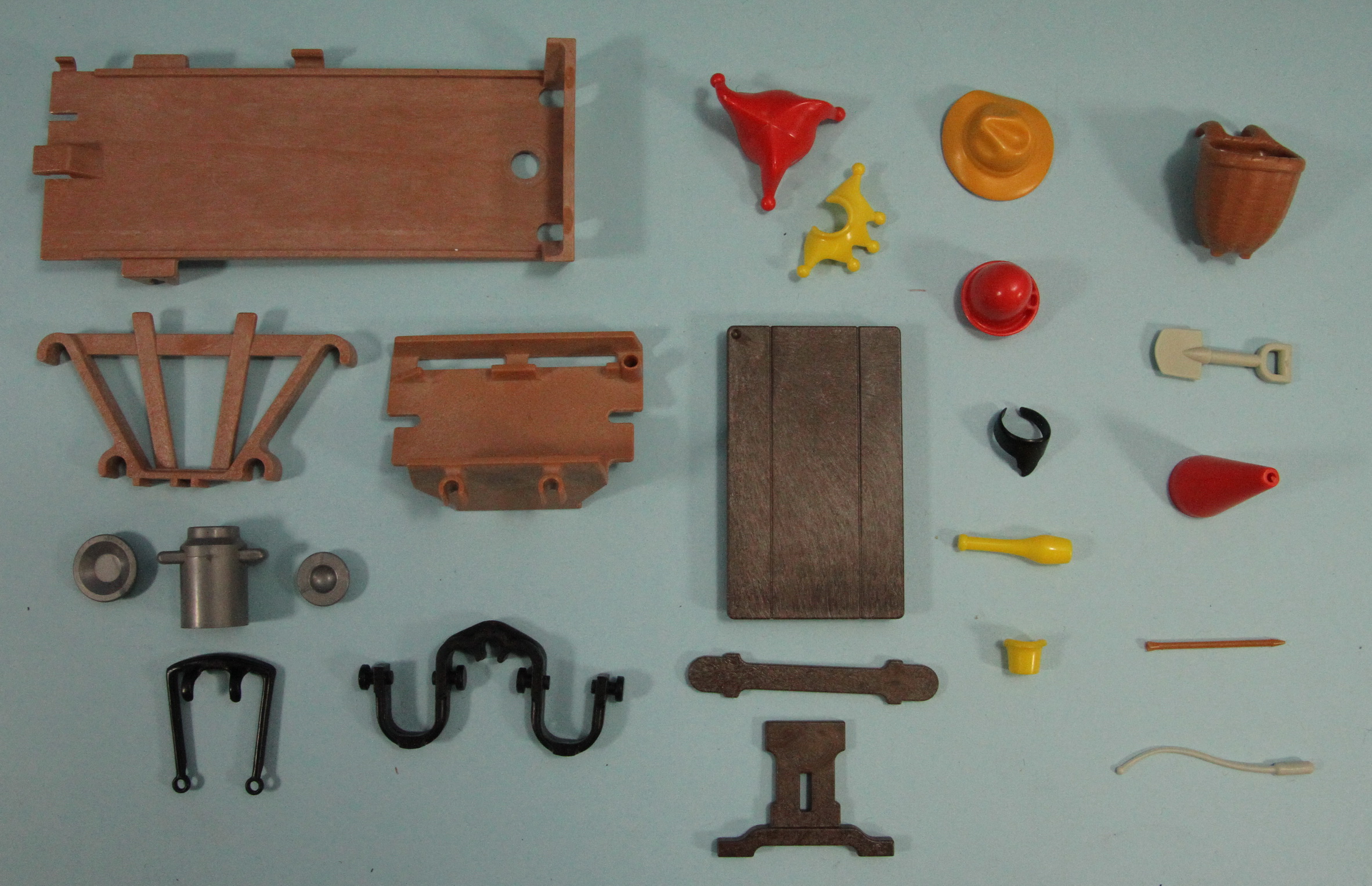 Another comment by people who had these sets as a child was how easy it was to break the klicky hands (until the early 1980s, all klickies had hands molded as part of the arm, so-called ‘fixed wrists’)! It is possible that the plastic used for Color parts was different from that of other Playmobil, perhaps so the ink would ‘take’ to the surface better. It may be that the plastic was also slightly weaker.